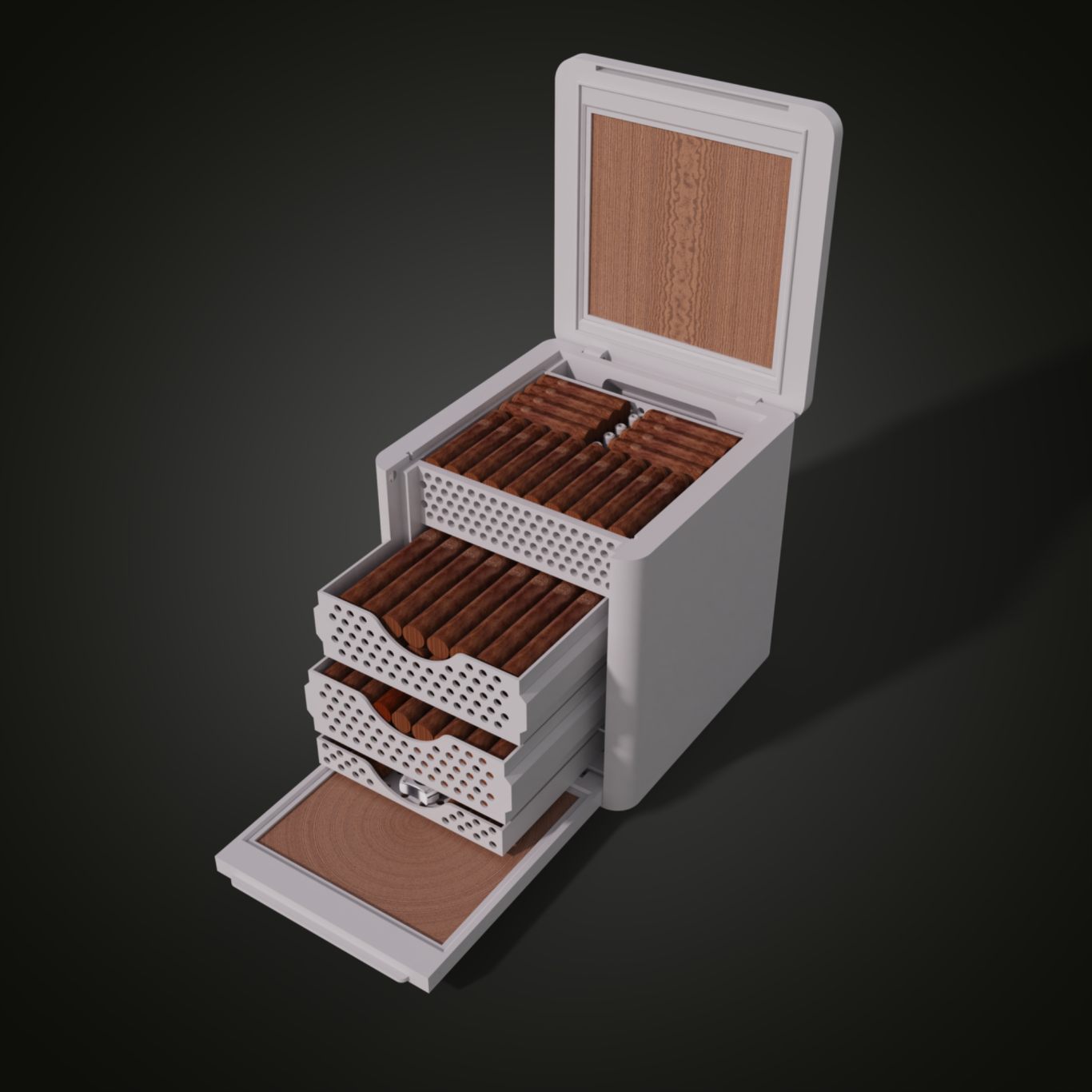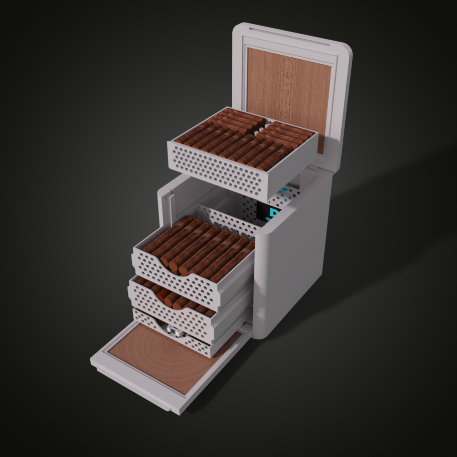 With open trays, sufficient spacing, and hollow divider elementsensures that humidity reaches every area of the CIGARCUBE evenly, even when fully loaded.