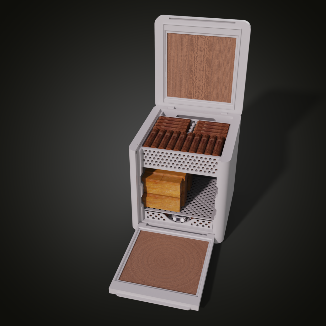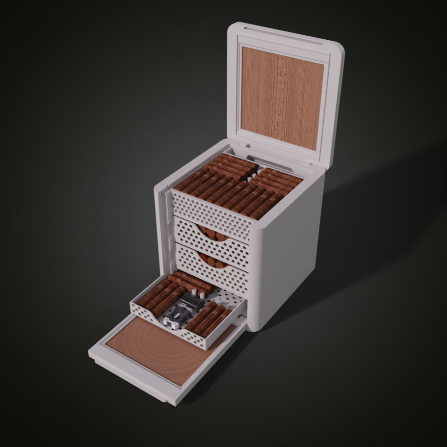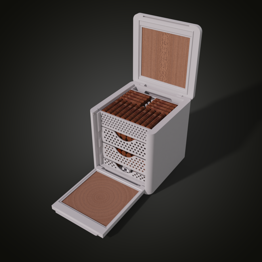 With open trays, sufficient spacing, and hollow divider elementsensures that humidity reaches every area of the CIGARCUBE evenly, even when fully loaded.